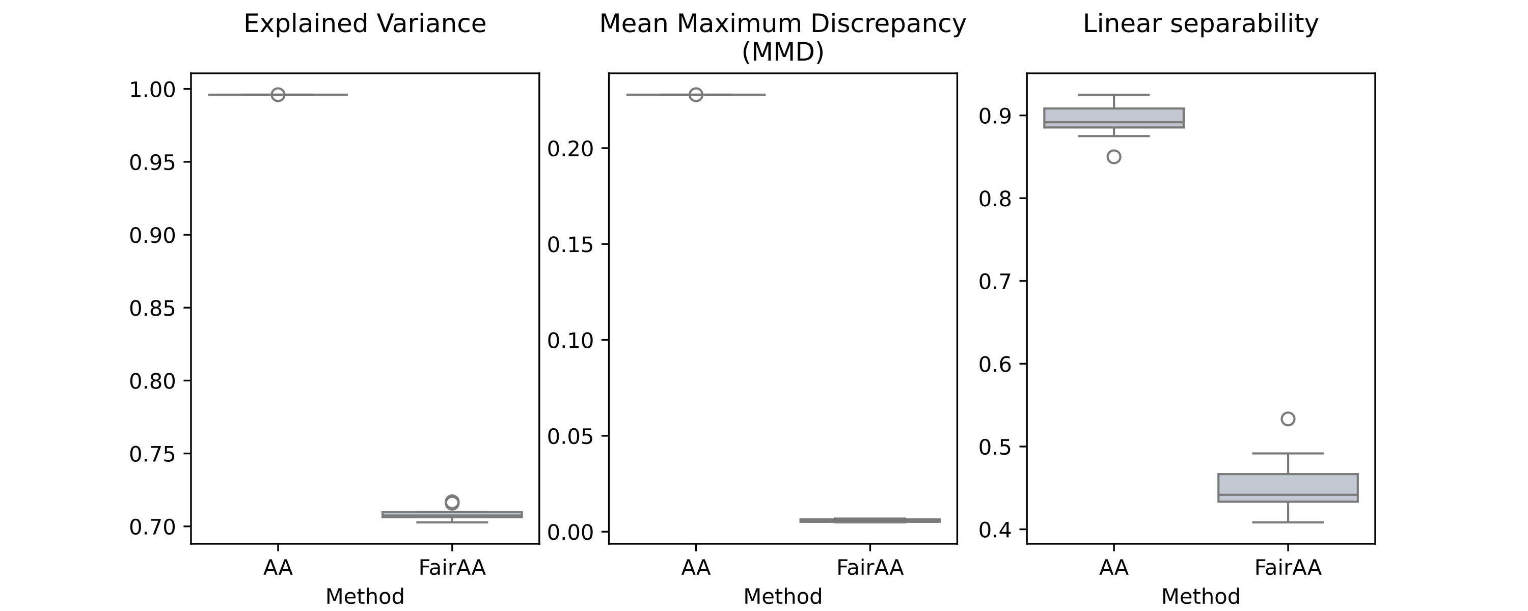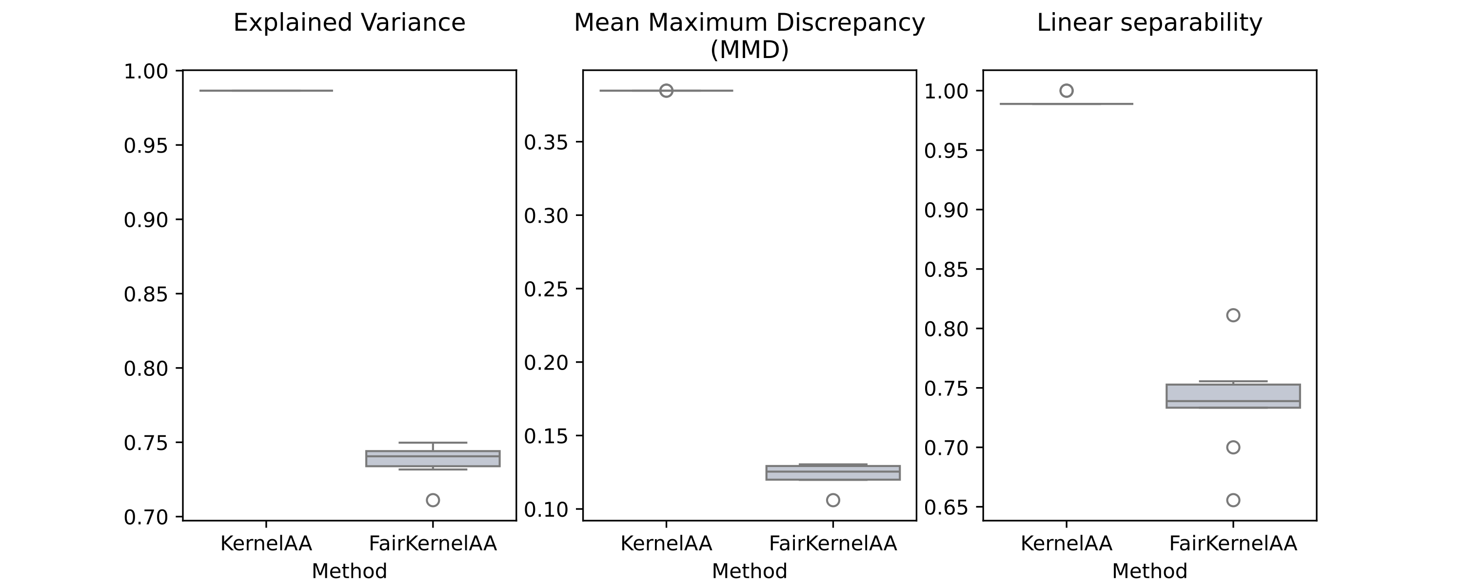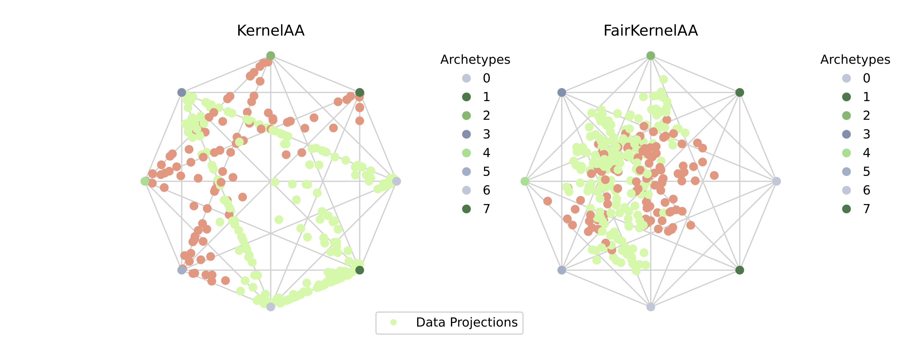Therefore, FairAA can be easily extended to kernel-based representations that rely on other pairwise data point relationships (FairKernelAA).